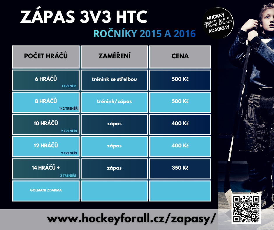 Zápasy 3v3 vč. golmanů na malém hřišti (HTC)